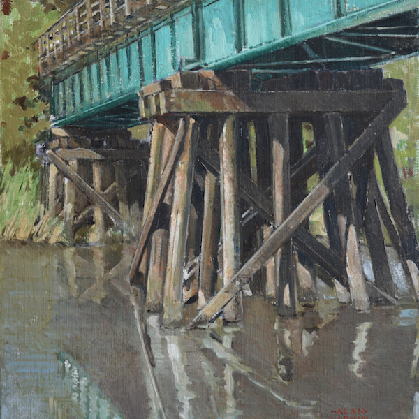 This month in the Underground Gallery at the Harrison Center, we have a very exciting show which is brought to us by the Indiana Plein Air Painters Association (IPAPA). The IPAPA is a group whose mission is to educate painters and viewers alike on the importance and significance of plein air painting, which is the art of painting – traditionally landscape and nature paintings – outdoors as opposed to inside a studio. Along with IPAPA’s goal to educate people on what plein air painting is all about, they also aim to revive and restore appreciation for Indiana landscape paintings. All of the pieces in this show in the Underground Gallery are plein air paintings depicting scenes from different outdoor places in Indiana, including scenes of nature and landscapes.