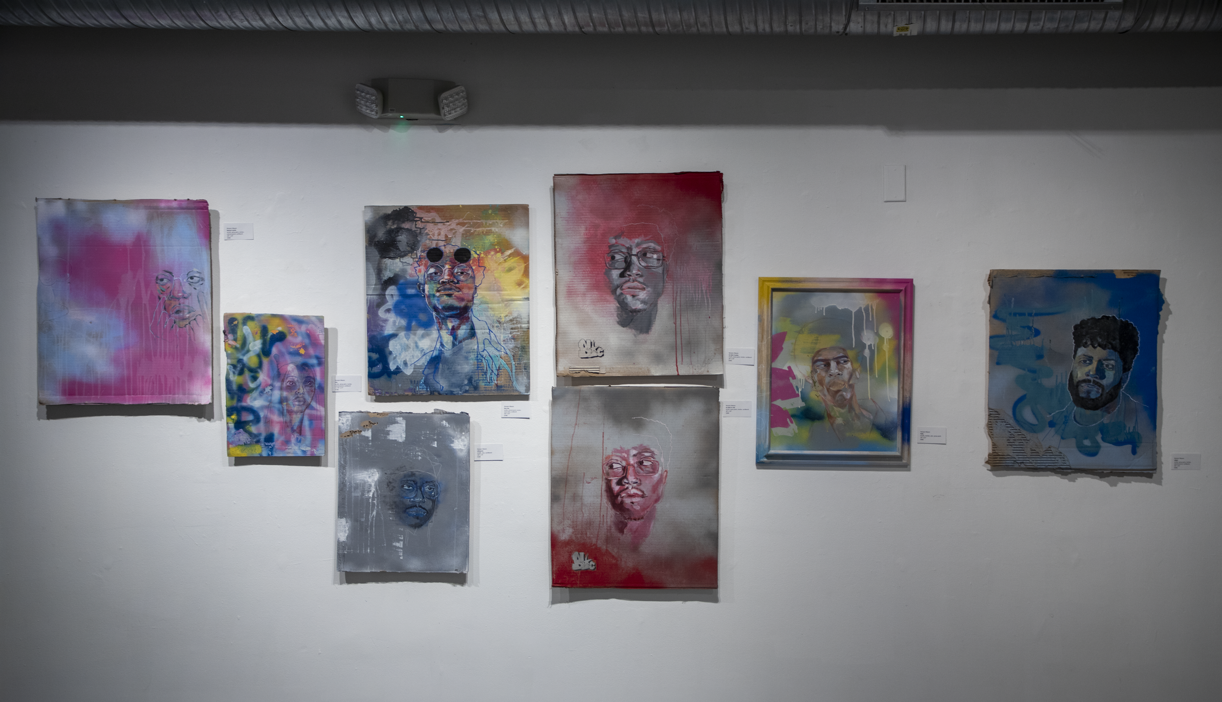 nobody waves goodbye is an impressive showing from artist Kenyon Mason that mixes traditional drawing techniques with an exuberant, youthful use of materials to create portraits that are as arresting as they are ephemeral. He combines cardboard, newspapers, and spray paints to create enigmatic, emotional images that capture the constantly changing landscape of young adulthood.