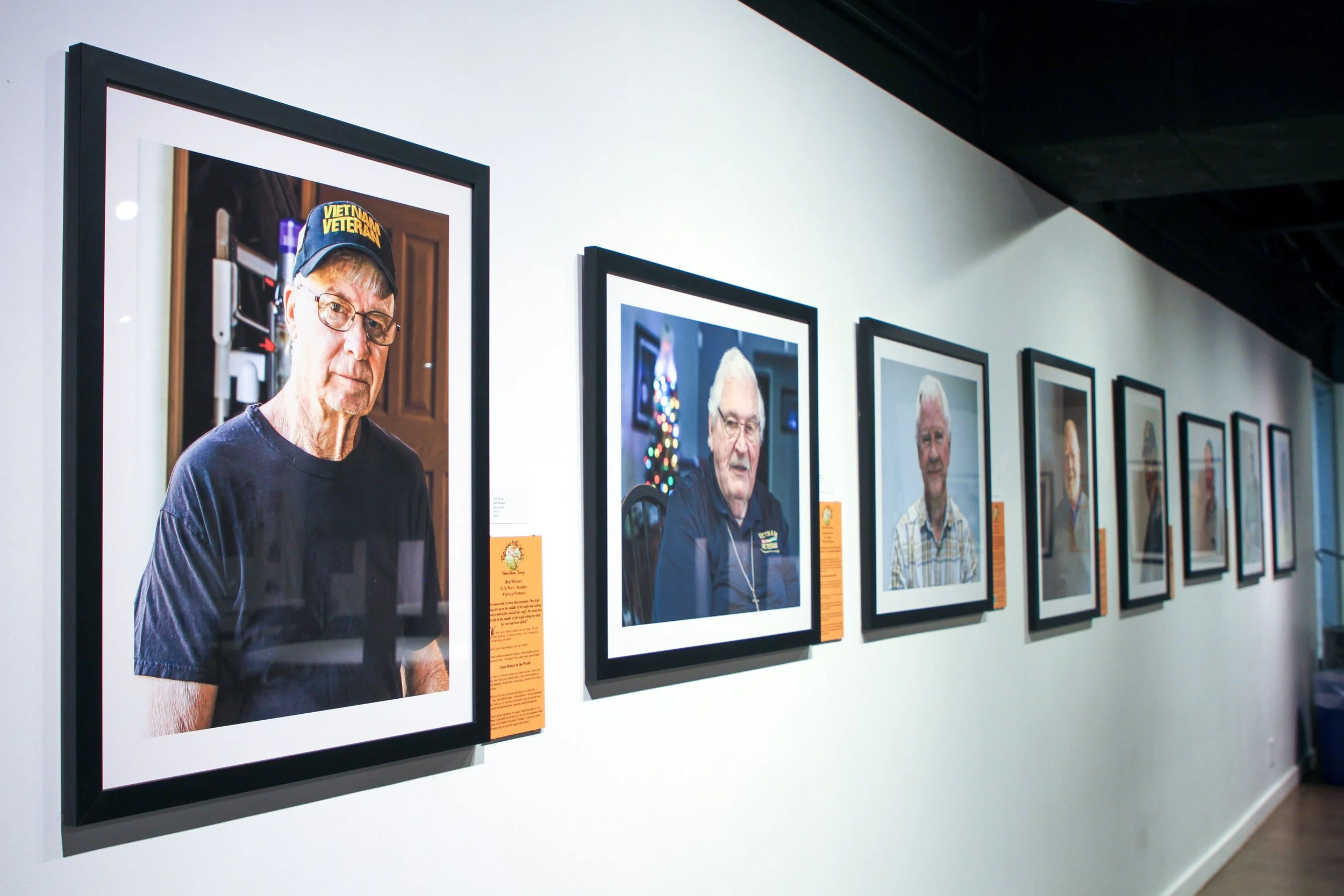 The exhibition consists of twenty-five veterans’ portraits and snippets of their stories, providing a glimpse into a significant moment in our country’s history through the perspectives of older generations of Americans. Many of these interviews had overlap in subject matter: discussion of friendly fire, the role of wives in readjustment, protest, and sacrifice in times of war, loneliness, the list goes on. “I was surprised by the number of veterans I interviewed who thanked me for doing this, indicating that they never did get an opportunity to tell their stories,” Wickes said. “I hope the exhibition will honor their contributions and their perspective.”