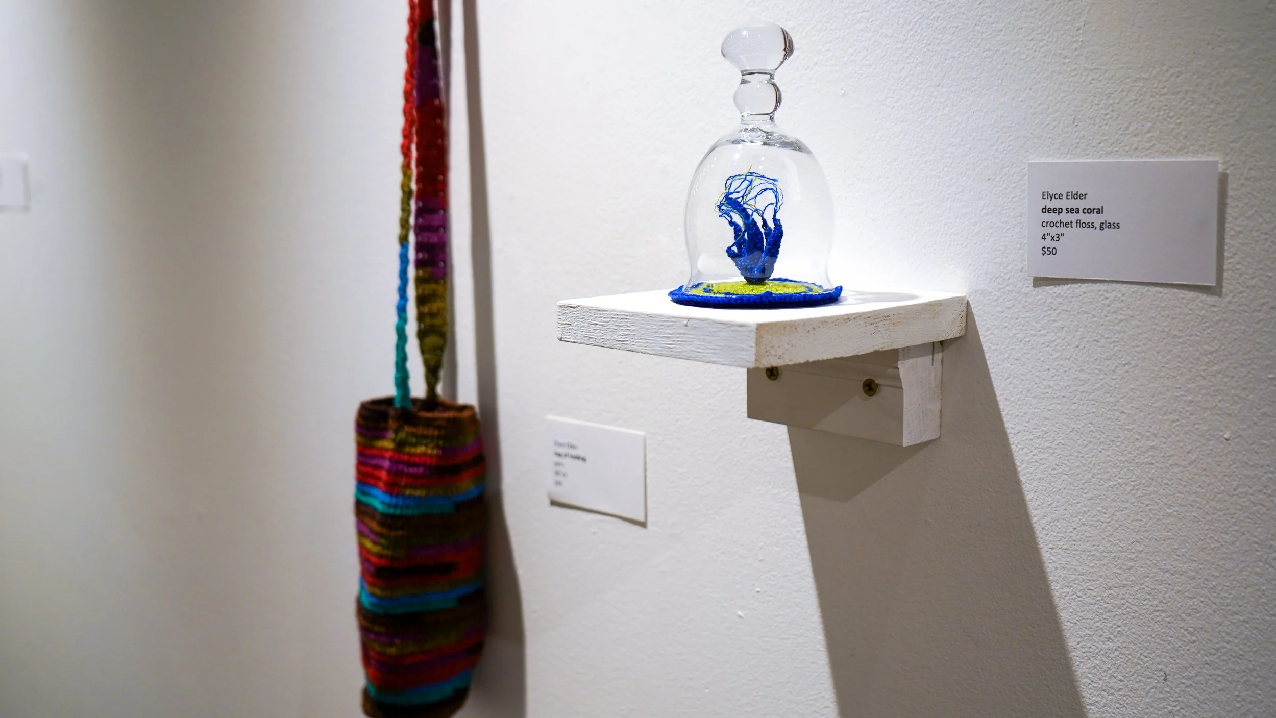 Elder also draws on personal experience in her work. While her crocheted work titled "Hand of Glory" refers to an old practice of severing and preserving a murderer's hand, it is also a way for her to explore her relationship with her own hands. "I have a lot of trouble with my hands. I've lost feeling in my hands due to injury, so I'm always thinking, how much time do I have left to use them?" The "Hand of Glory" has a psychological element to it as it holds both her sadness about her injury and her joy of making as Elder wonders how long she will have the ability to use her hands to make art. While many of the themes in “Octoberelyce” may seem dark and sinister, to Elder they are a celebration of her favorite things.