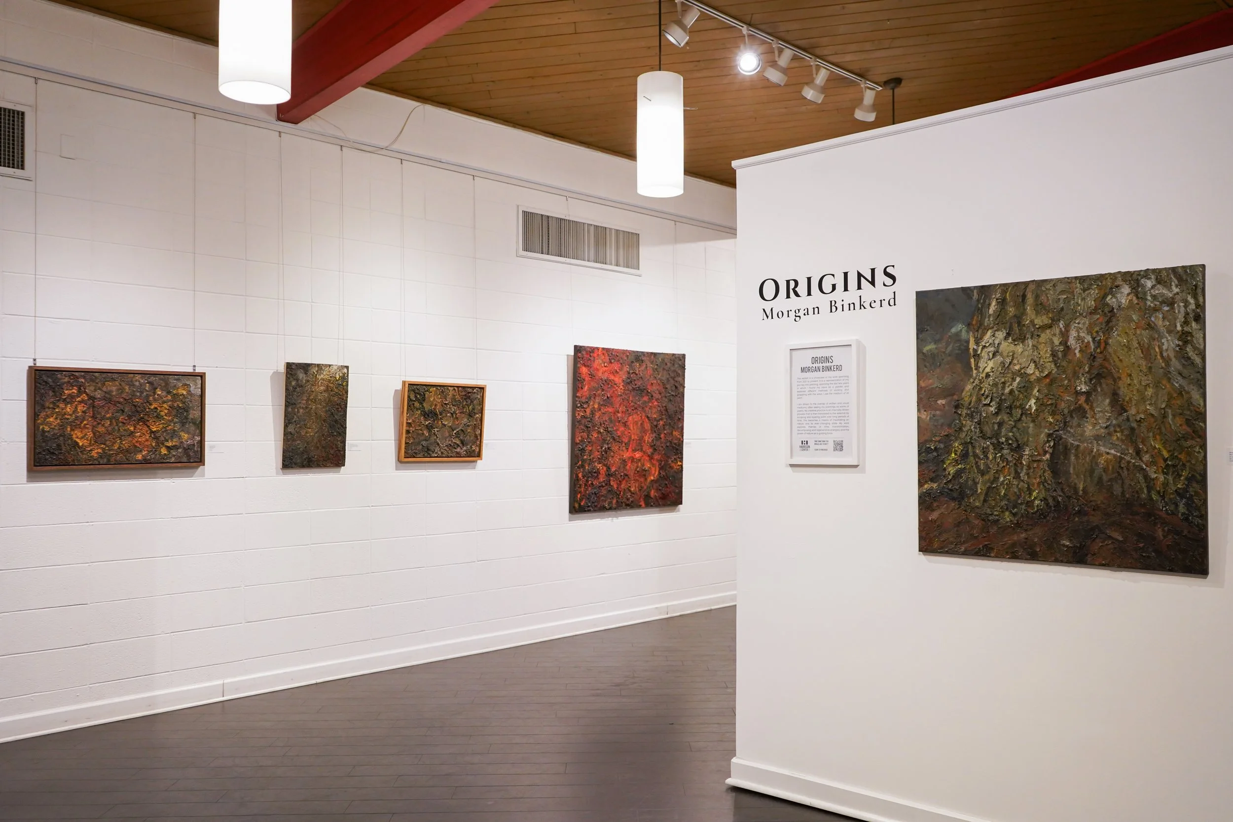 When viewing this show, the audience will notice how Morgan's newer works have a heavy use of impasto on the canvas. This has become a recurring visual motif in her work. Origins also refers to the transformative nature of the word. Binkerd often used the words regenerative and transformative while describing this collection.