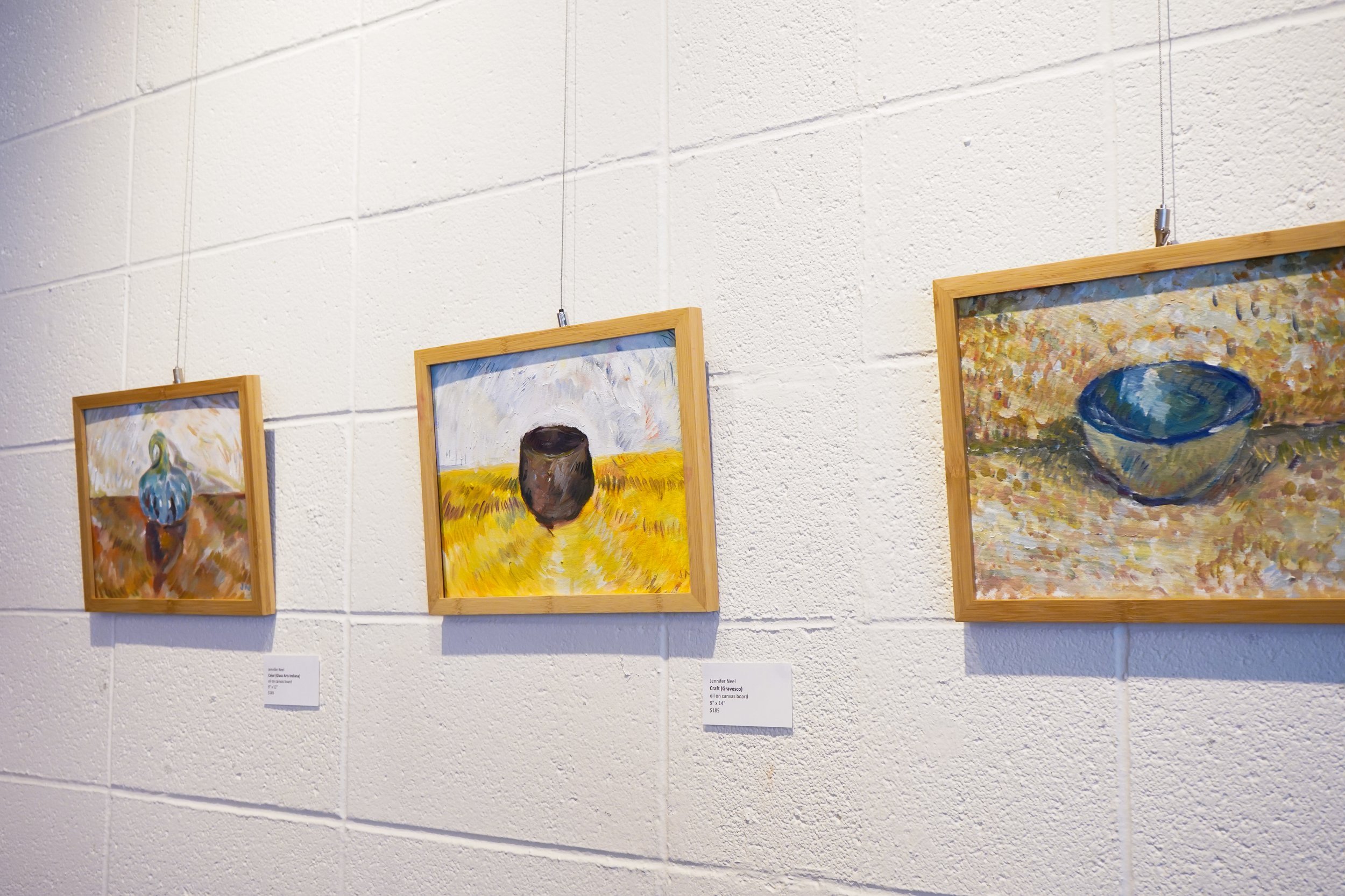 Some paintings include Indianapolis foodie favorites like croissants from Amelia's, donuts from Long's Bakery, and Cafe Babette's pastries. Other still-life paintings include products from ArtMix, art from Glass Arts Indiana, and even plants from Snakeroots.