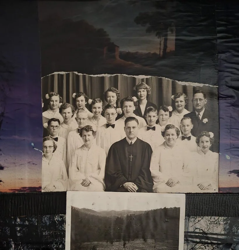 Kindred from Bobby Gilbreath is a show about chosen family and the tension that exists between who we are and who we choose to be in alignment with. Gibreath mixes family photos with images from Life Magazine and paints to create nostalgic, emotional collages. The images are familiar and eerie.