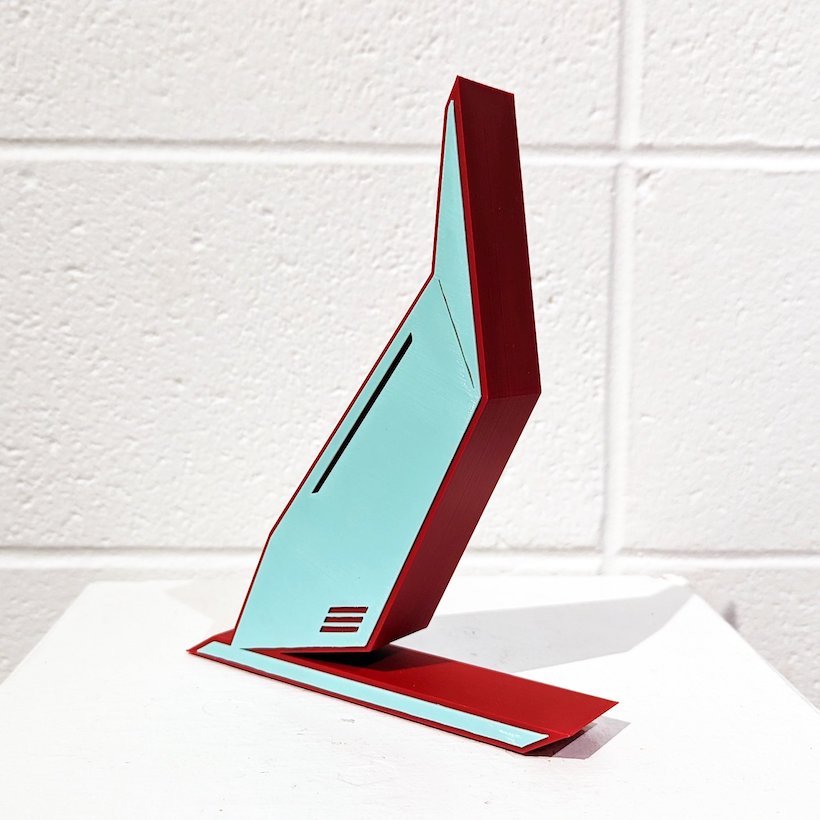 In addition to the aerial blade paintings, the rest of the show thematically aligns with my geometric visual language and exploration of chaos and balance. Some of the larger square paintings are inspired by the video game Halo, featuring angular Forerunner architecture amidst the iconic worldbuilding of Halo.