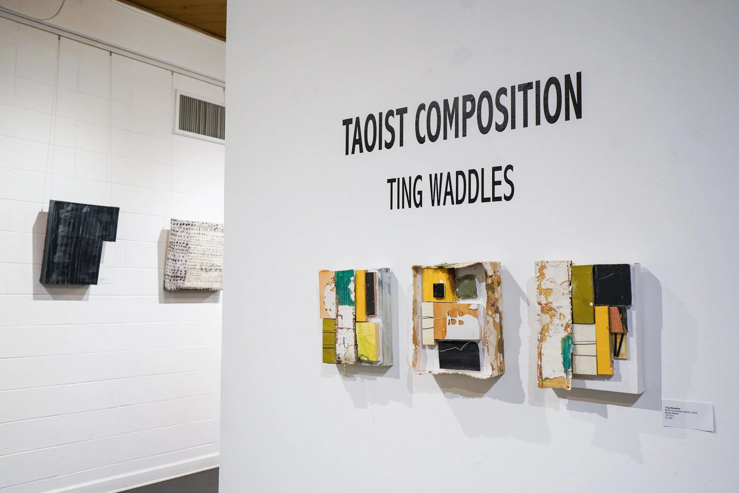 In Ting Waddles' latest body of work, titled Taoist Composition, she creates a new body of abstract, sculptural pieces that offer viewers insight into her unique artistic and philosophical practice. This show is full of pieces that serve as a canvas for viewers to explore the concept of life's cyclical nature. Waddles does this through her use of previous work to create something new, emphasizing that we are all constantly in the process of growing and changing, in a constant state of flux.