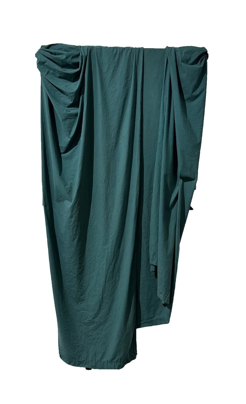 In the Speck Gallery right now, a canvas hangs on the wall that is completely concealed. A green sheet is draped over it—and next to it, the words “DON’T TOUCH” are sharpied onto a strip of tape stuck to the gallery wall. In the days leading up to the gallery opening, I wondered if the piece would ever be revealed. I was curious about what was hidden underneath, and every time I walked by it, I imagined ripping it off—it seemed like it would be satisfying, like unwrapping a present—but I left it alone and waited for the work in progress to reveal itself.