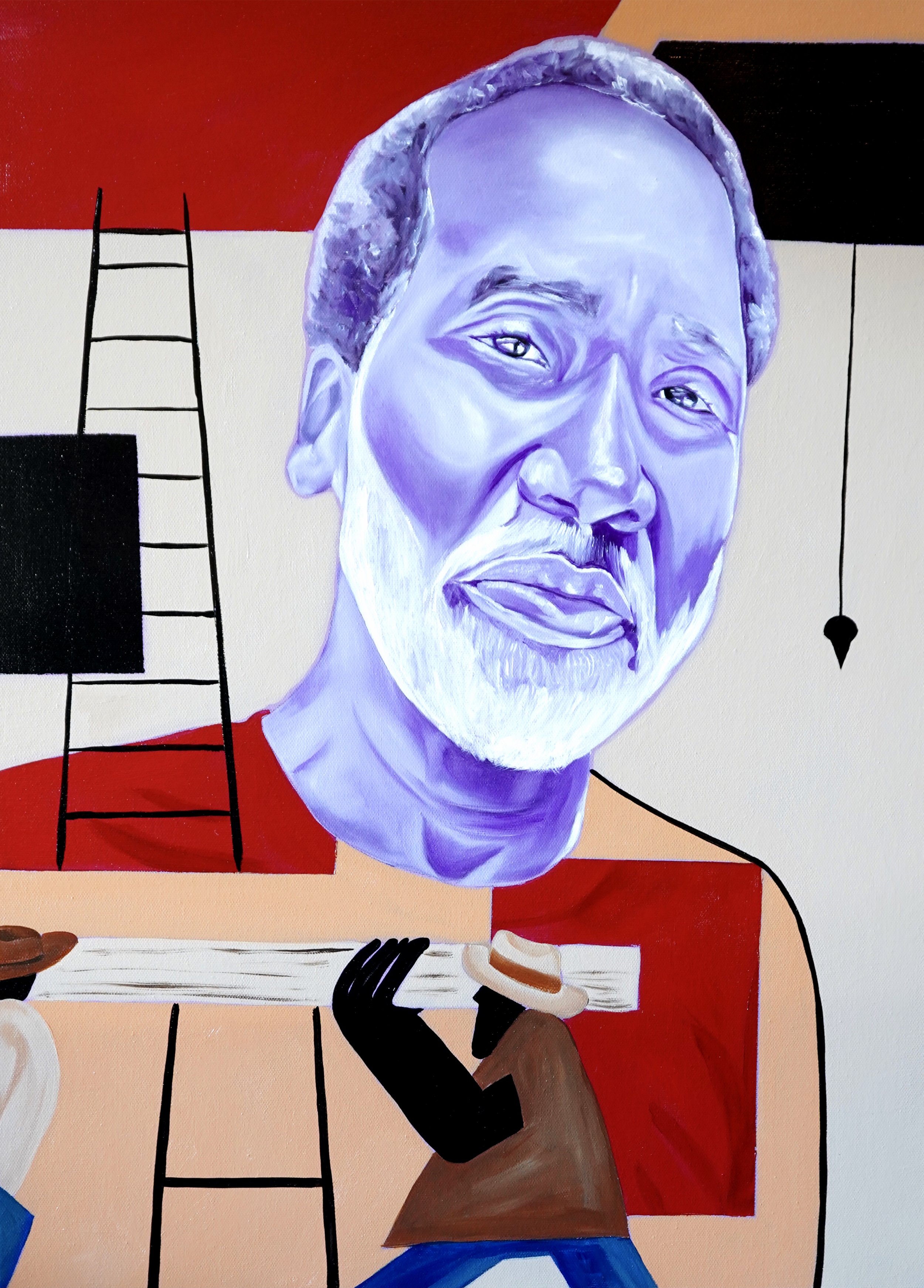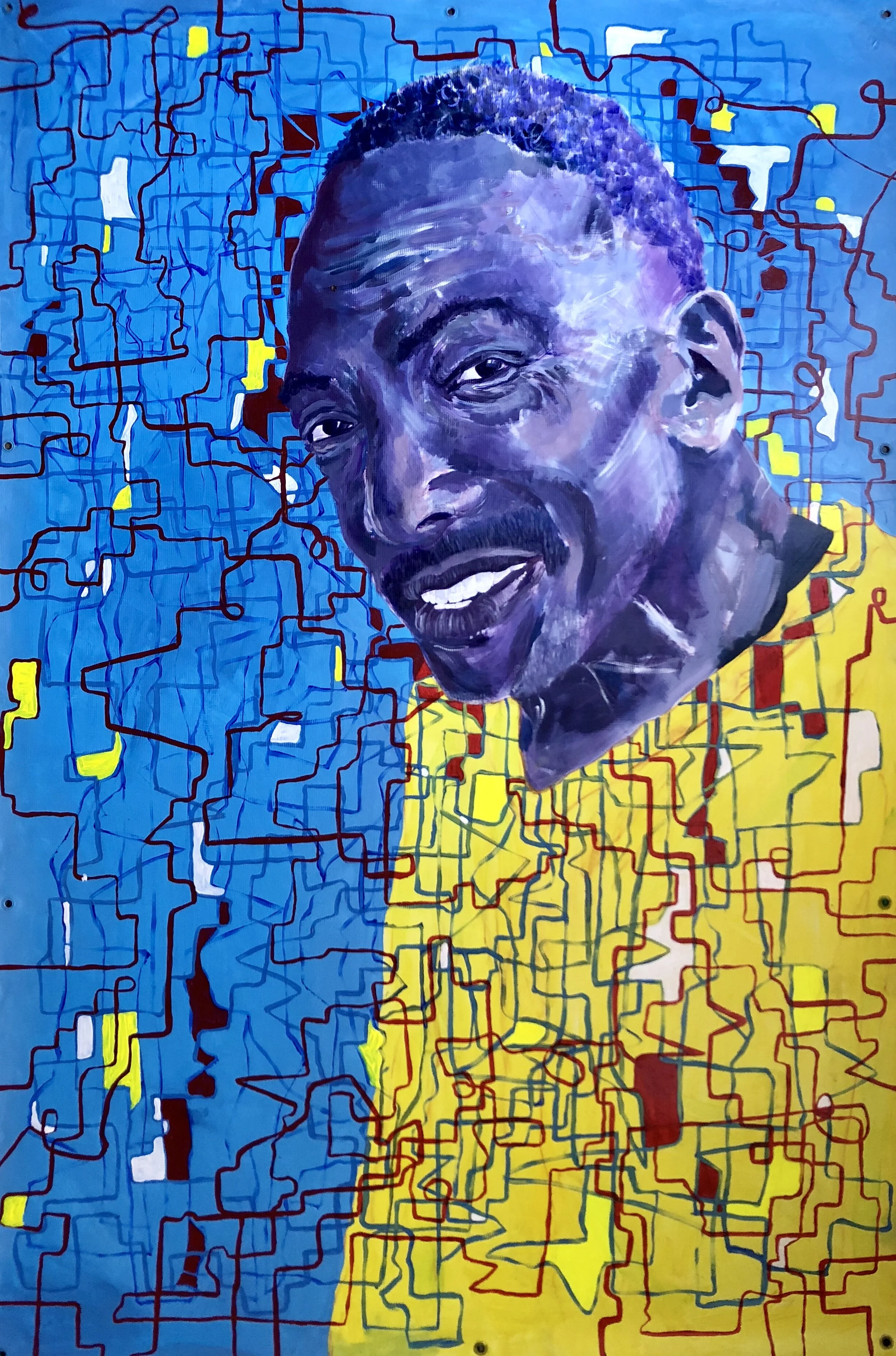 Over a period of three years, Abi painted eighteen 6x4-foot paintings with visual themes drawn from African American art history, which hang along the 16th Street corridor in the Hillside area of Martindale-Brightwood.