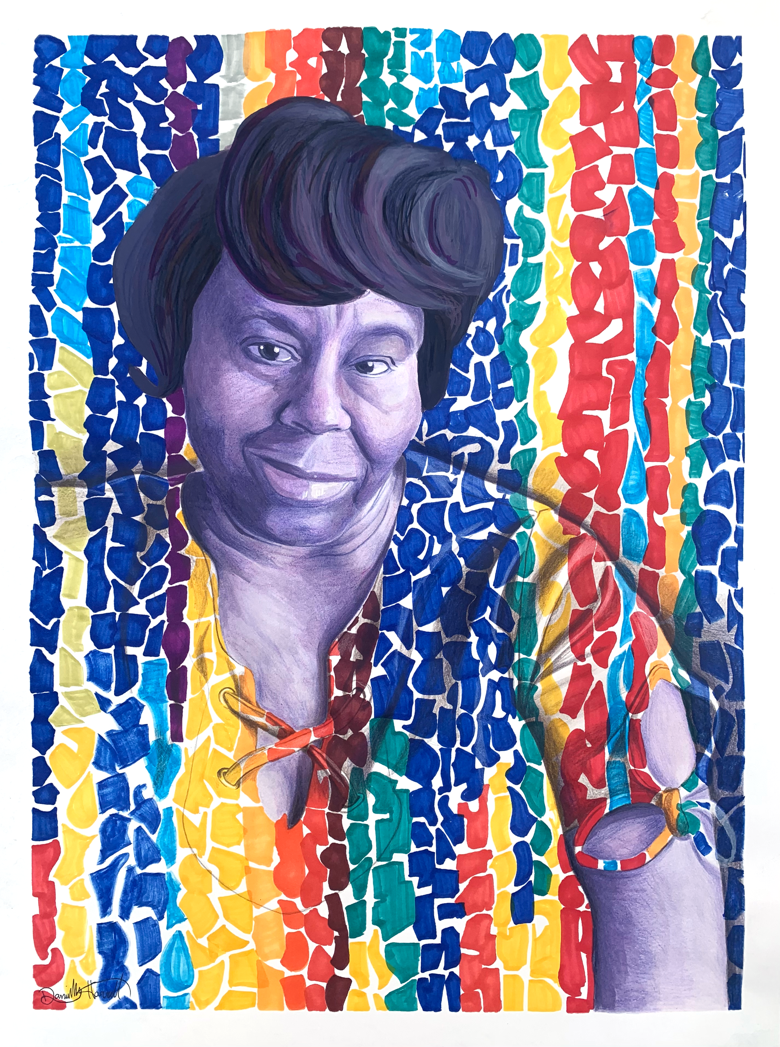 Abi was followed by artists Danielle Harrell, Cierra Johnson, and then Tashema Davis, the current Greatriarch artist. 47 have been completed. The paintings have been exhibited at the Mayor's Office, Edna Martin Christian Center, Black Expo, the Indiana State Fair, Polklore Micro-Museum, the Harrison Center, and other community gathering spots.