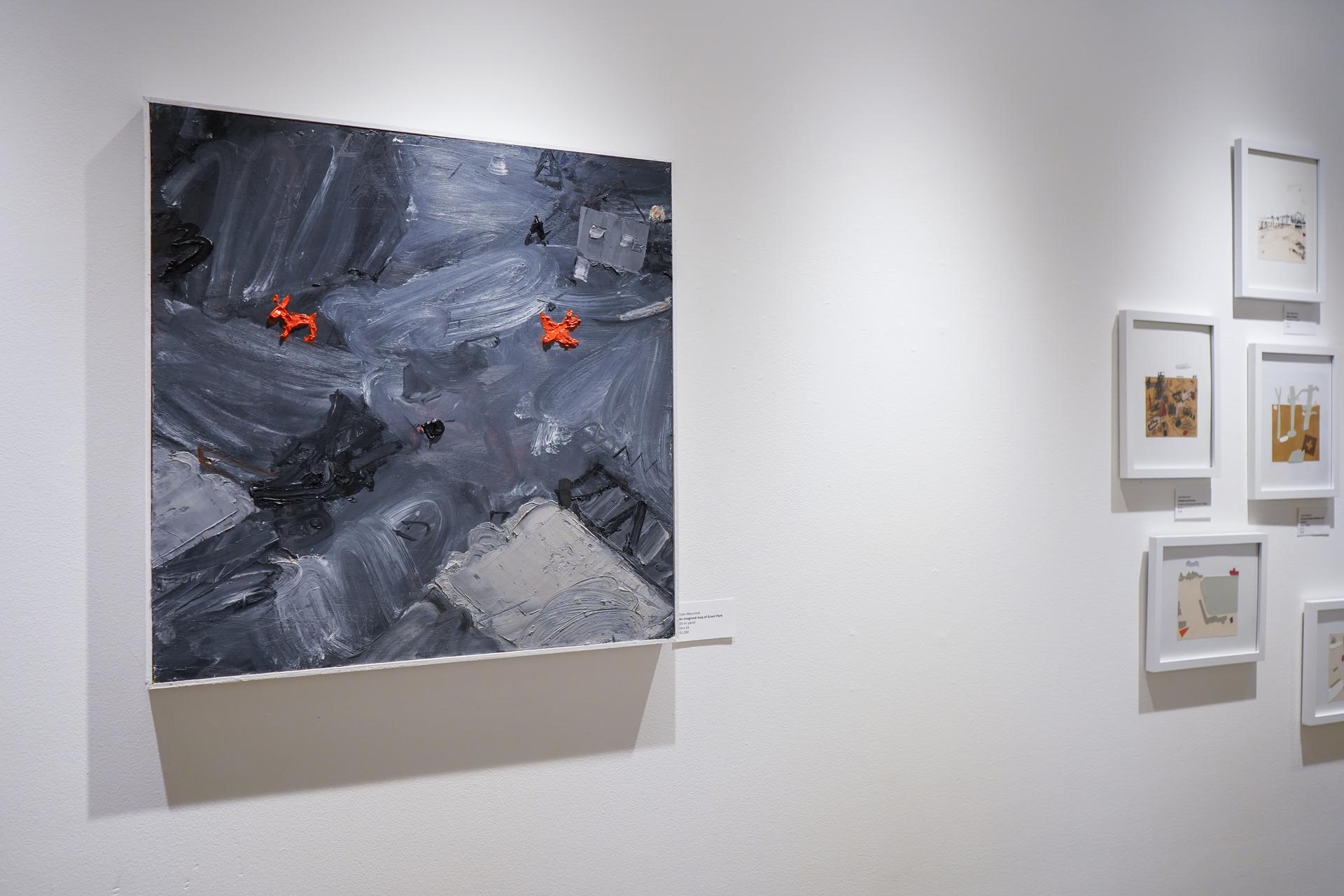 While Meuninck's primary medium is oil paint, he also incorporated colored pencils, paint sticks on butcher paper, paper cut-outs, and pastels into this show. Still, oil paint is his favorite. There's something unnameable…about oils, though, that I like. Its viscosity when I use it." He's especially drawn to the uncertainty oil paint brings and its "unpredictable drying possibilities." For Meuninck, unpredictability is an opportunity for potential.